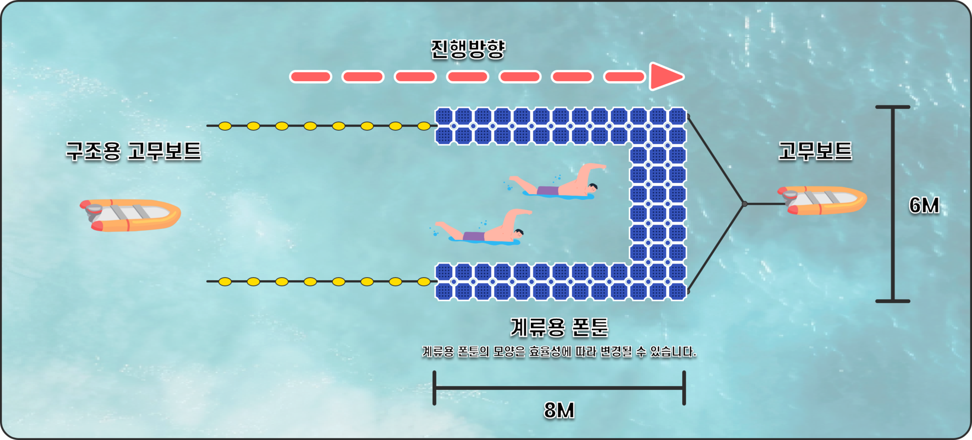 파도가 높거나 바람이 강한 날에도 비교적 안정적인 환경에서 수영할 수 있도록 설계되었습니다.