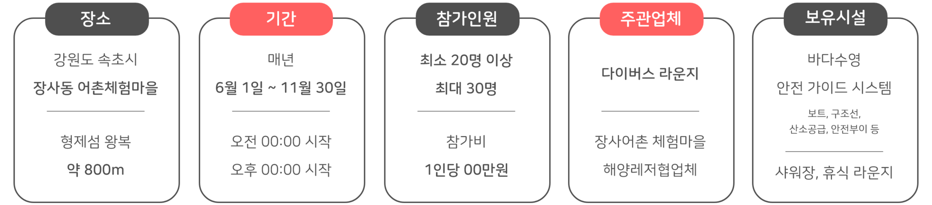 장사 어촌체험마을에서는 두 가지 바다수영 코스를 운영하고 있습니다.